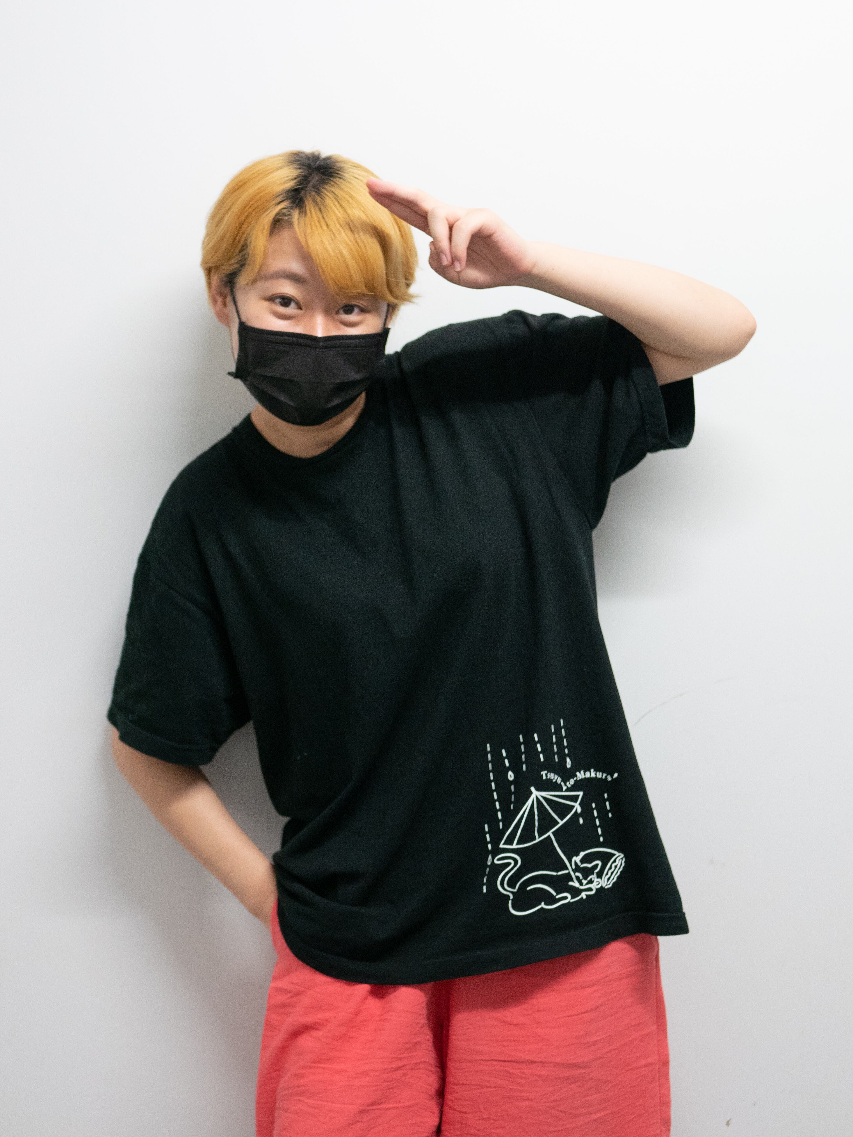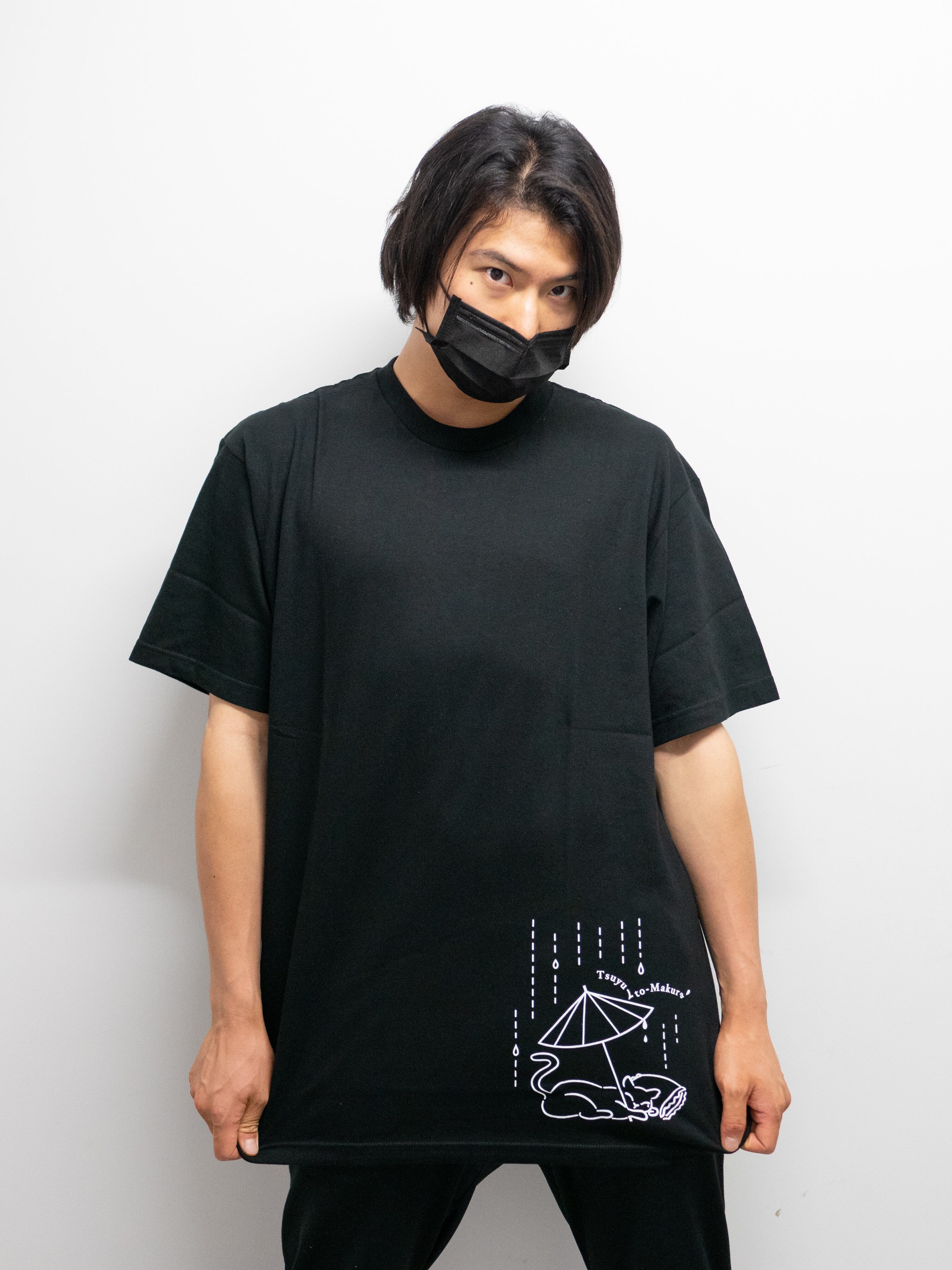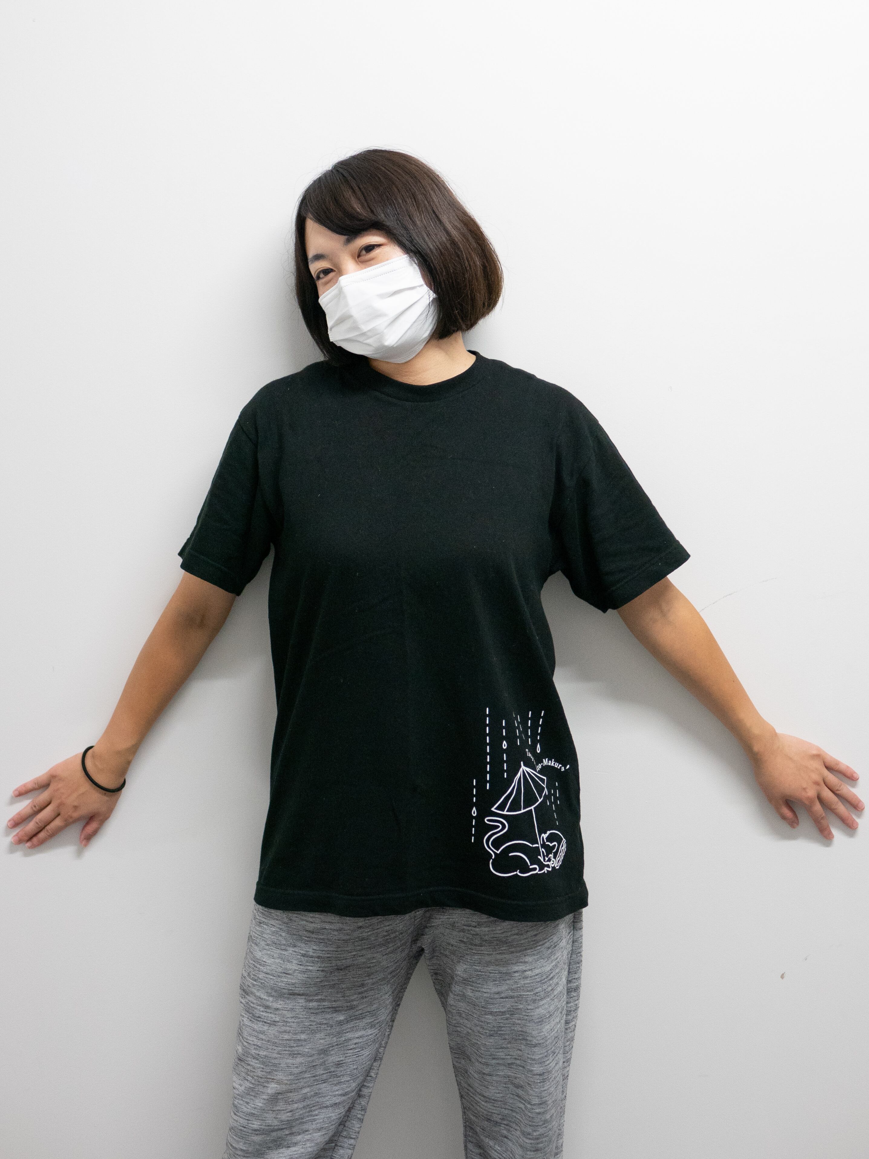 腰元に猫のイラスト/首元に劇団ロゴをあしらっています。